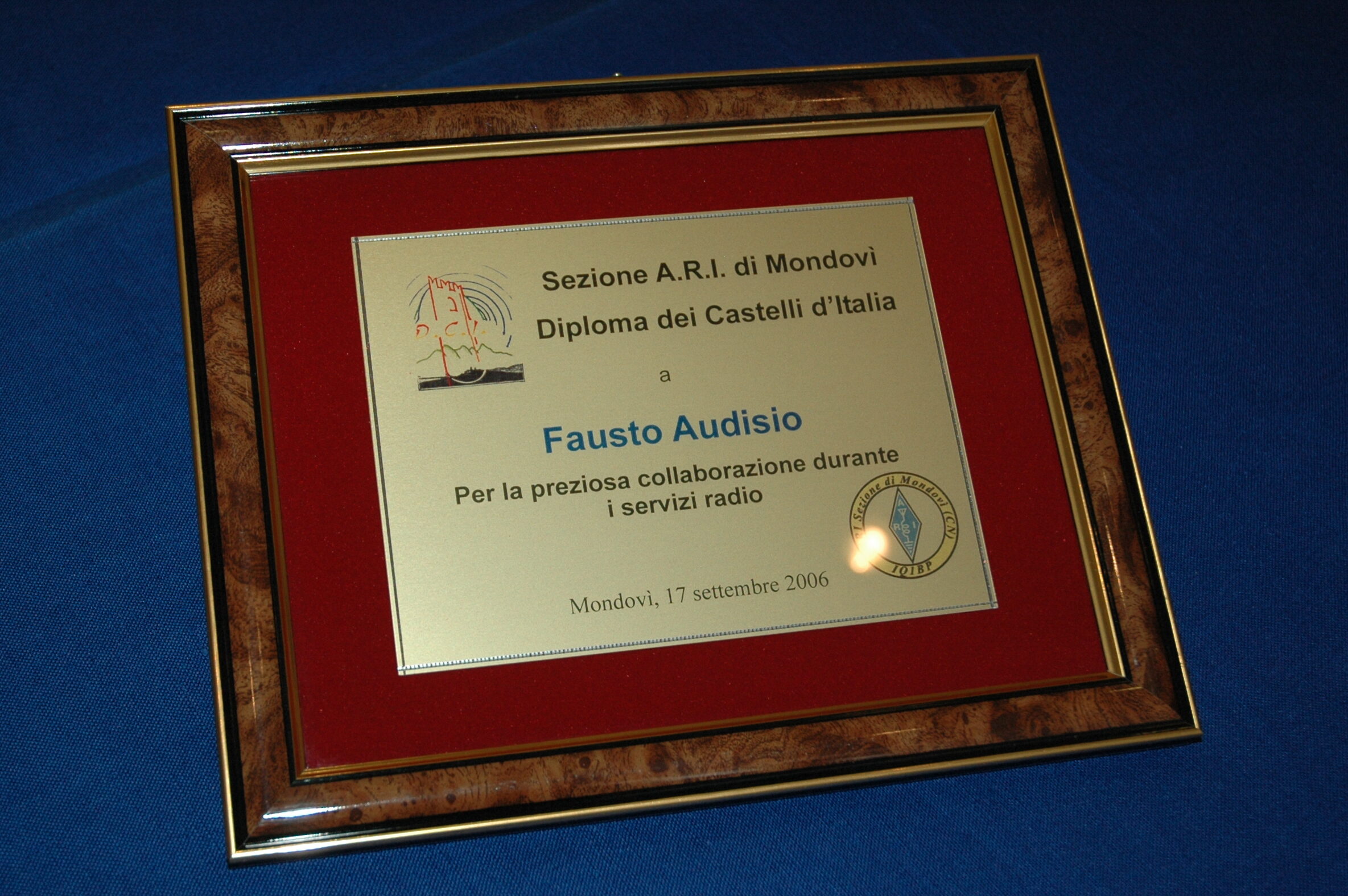 Per tale aiuto fu premiato durante il 5° Meeting (settembre 2006) con una targa a ringraziamento.