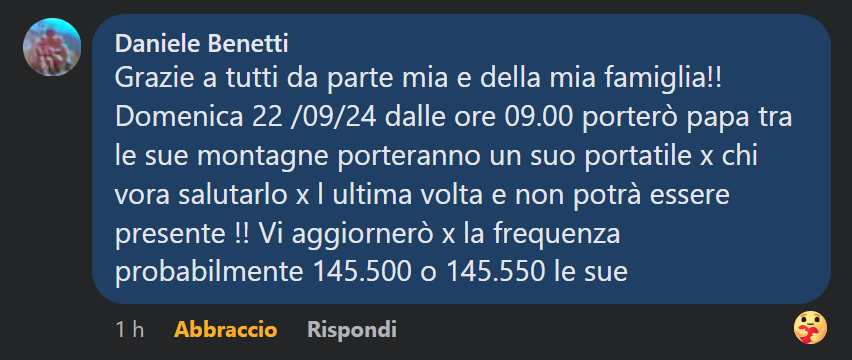 [11:33, 12/09/2024] IU4KET Massimo: Condoglianze alla famiglia. Rip. . De IU4KET Massimo.